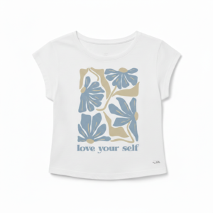 Losan lány póló fehér sárga virággal csillogó zöld felírattal