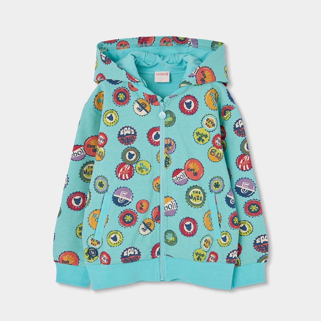 Boboli,mintás,lepatentolható kapucnis,cipzáros,fiú pulóver