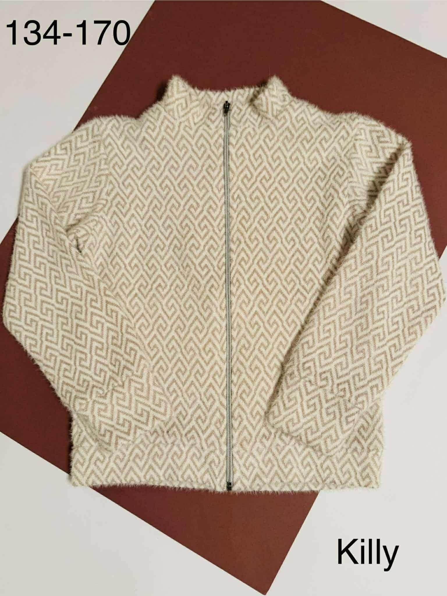 Killy,nagyon puha,fehér alapon,arany mintás kardigán