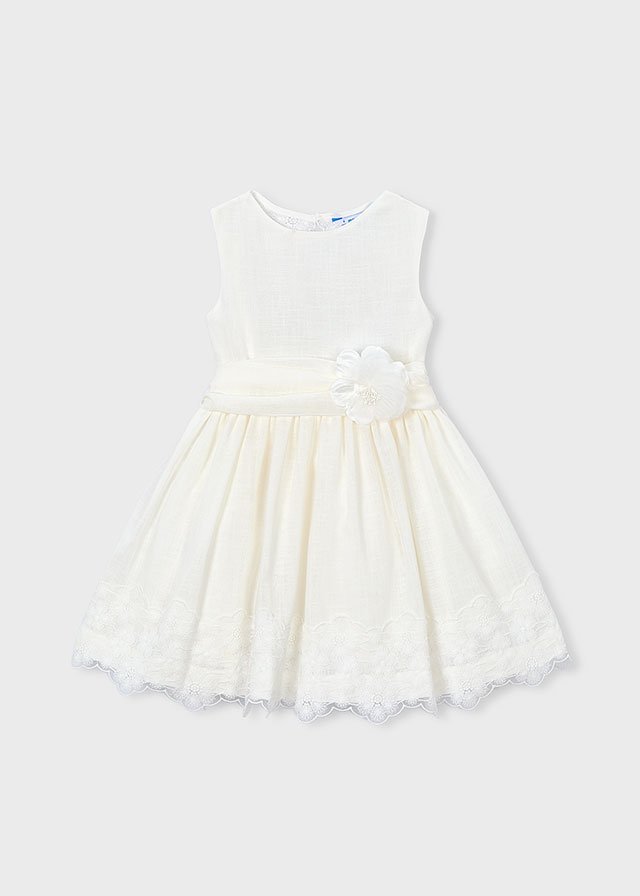 Mayoral lenes anyagú, hátul csipke mintás csodaszép fehér nyári alkalmi ruha