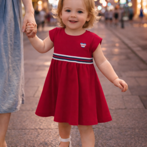 Piros bársony felső részes,kockás,loknis szoknyás ruha,kis táskával