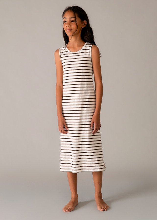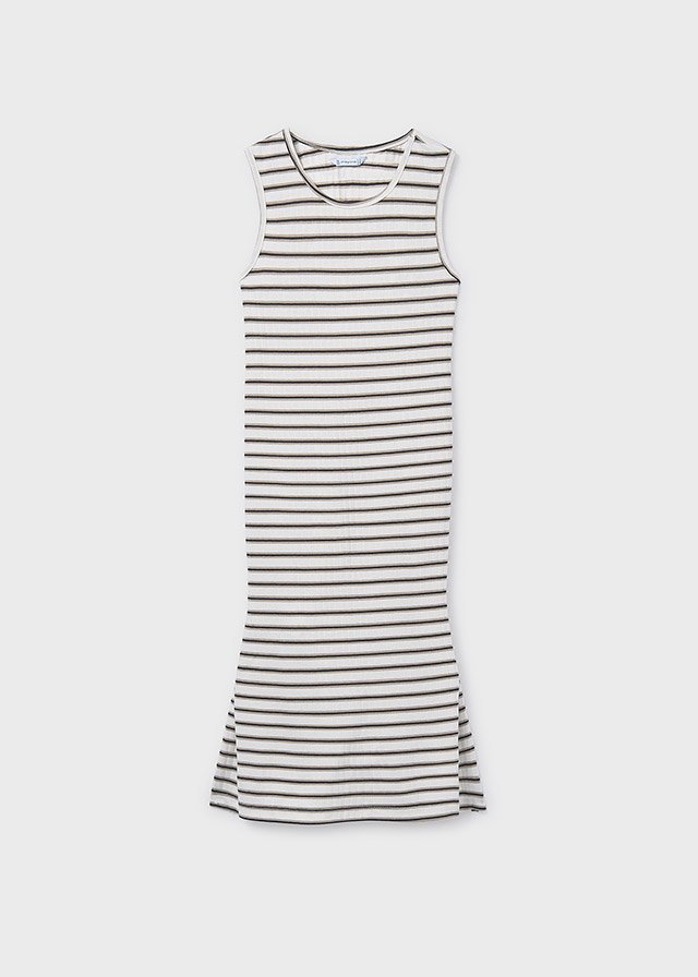 Mayoral,ekrü-arany-fekete csíkos,hátul kissé nyitott,két oldalt hasított, pamut ruha