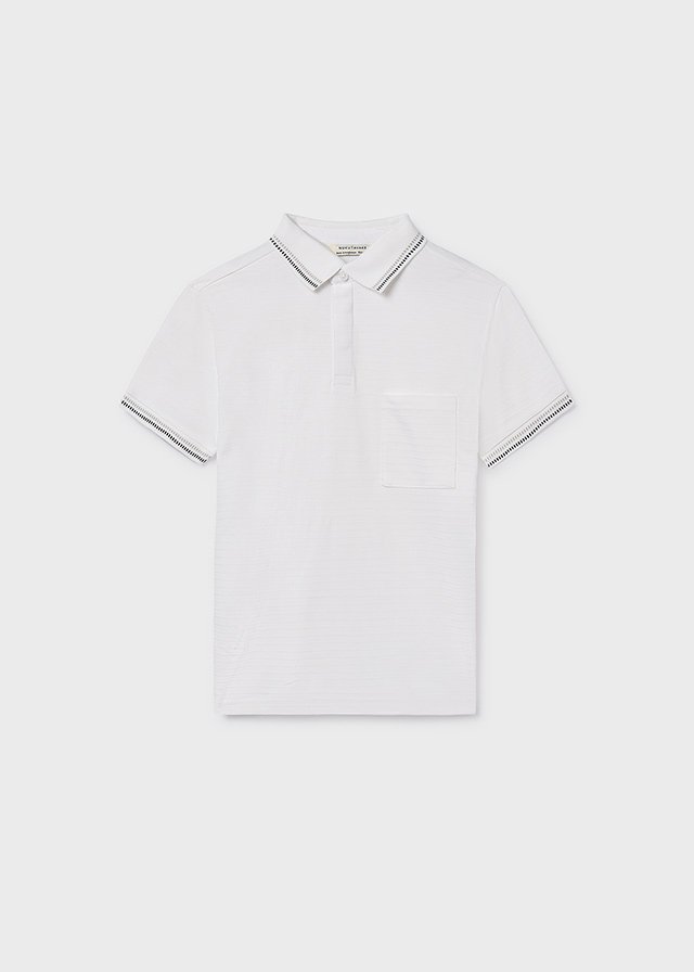 Mayoral,ekrü,bordázott,ujján és gallérján szolid mintás,fiú alkalmi póló
