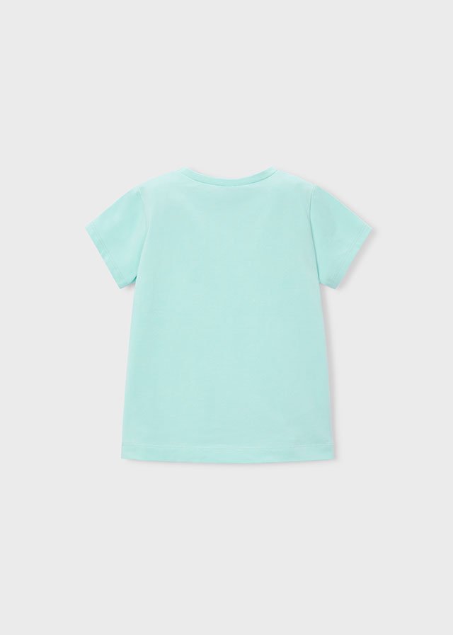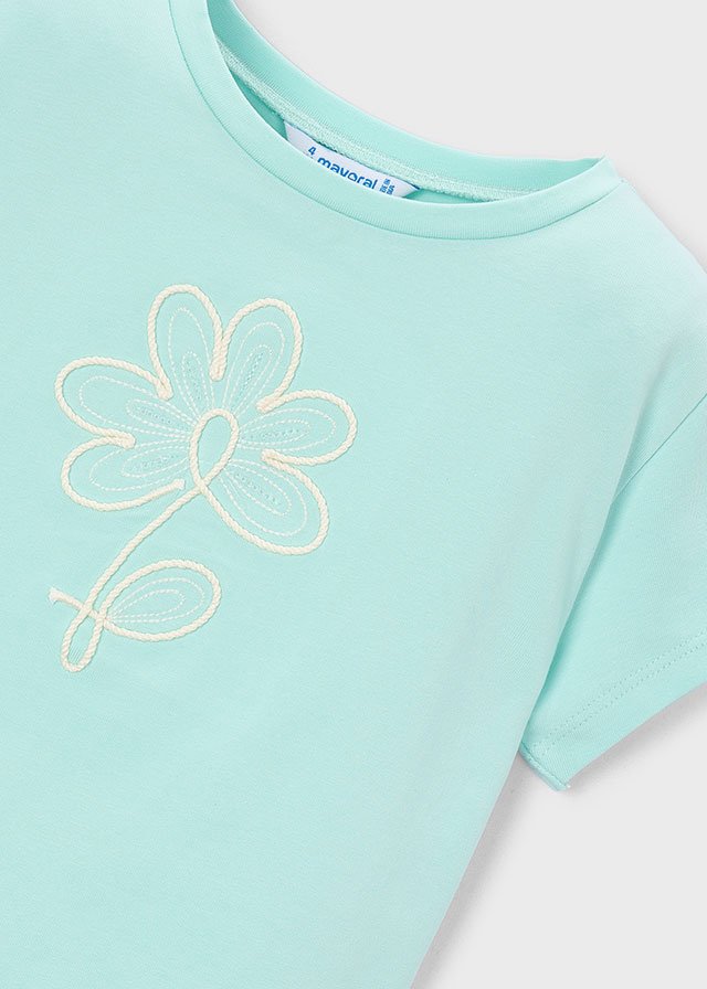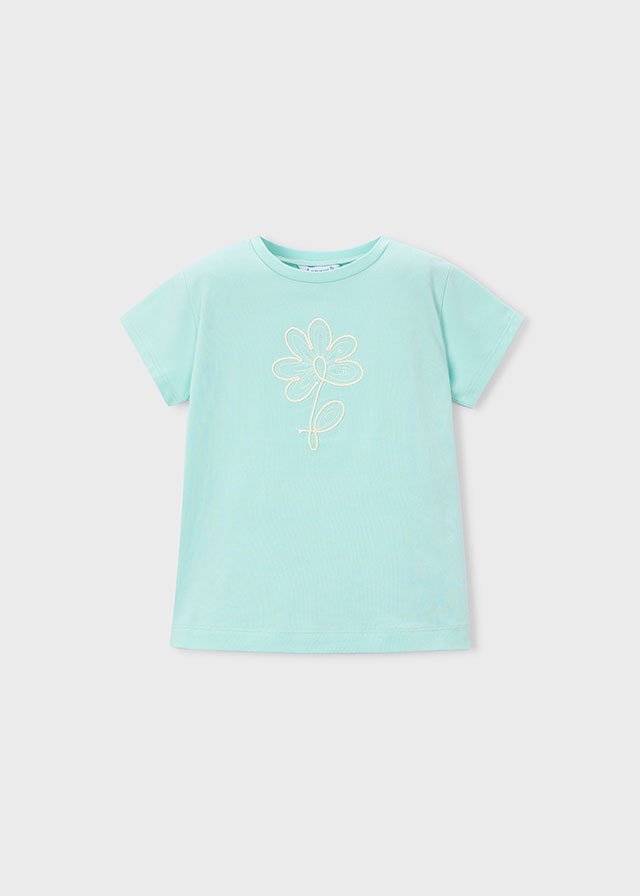 Mayoral,halványkék,elöl fehér, virágmintás, lány póló