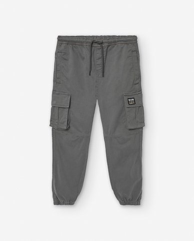 Szürke,sok zsebes,alján gumis fiú vászon nadrág