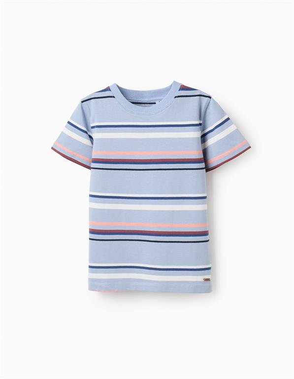 Zippy,világoskék alapon,kék,fehér,barna csíkos,100%pamut,fiú póló