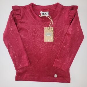 Killy,meggypiros,csillogó,vállon fodros,meleg,lány pulóver