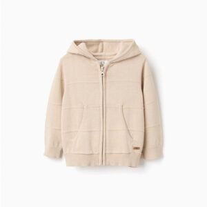 Zippy,beige,vékony,elöl zsebes,elegáns,kapucnis,cipzáros,kötött,fiú pulóver